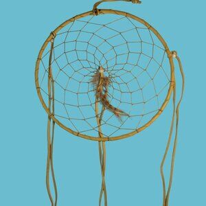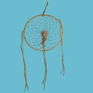 Handcrafted Dreamcatcher Feather Deer Hide Leather Hanging 10 in Dream Catcher