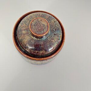 Handcrafted Drip Ash Glaze Pottery Mini Croc with lid