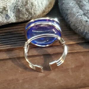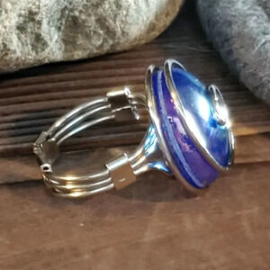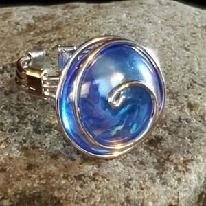 Handcrafted Edgy Cobalt Blue Luster Silver Spiral Luster Glass Bauble Ring