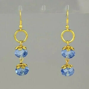 Handcrafted Edgy Faceted Blue Crystal Rondelles Gold Plated Dangle Earrings