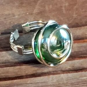 Handcrafted Edgy Green Luster Silver Spiral Luster Glass Bauble Ring