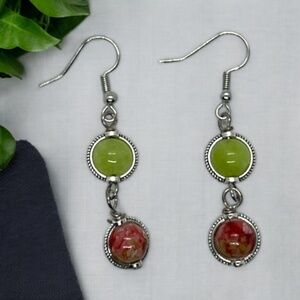 Handcrafted Elegance: Green & Red Natural Stone Earrings