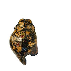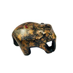 Handcrafted Elephant Figurine With Gold Leaf Pattern Bird Design 2"