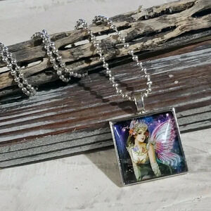 Handcrafted Faery Square Glass Cabochon Pendant Necklace