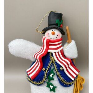 Handcrafted Festive Snowman Christmas Tree Ornament USA Patriotic Striped Scarf