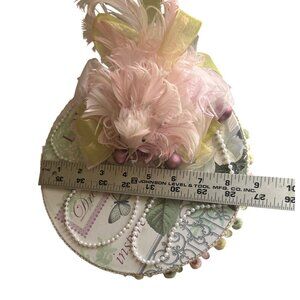 This handcrafted decorative box by Paula Scarlett’s offers a unique blend of style and function. The floral design, accented with a pink feather bird and pearl-like beads, adds a touch of elegance. Ideal for storing keepsakes or enhancing your decor with its charming aesthetics.