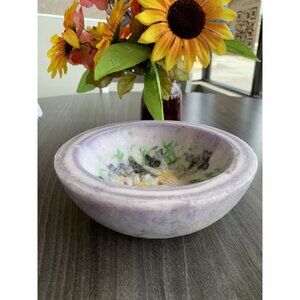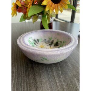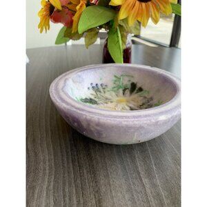 Artisan-crafted lavender bowl featuring real pressed flowers for decorative use. A charming centerpiece or accent piece for any home.