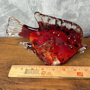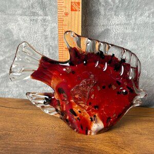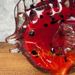 Handcrafted Glass Angel Fish Sculpture Red Clear Gold Crystal Piece Murano Style