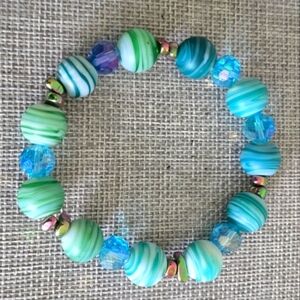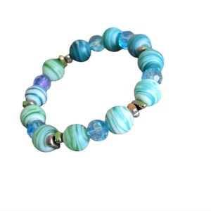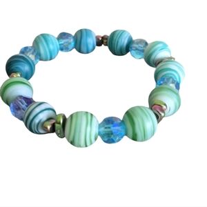 Handcrafted Glass Bead Turquoise Stretch Bracelet