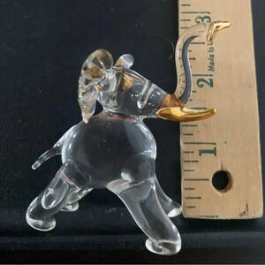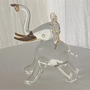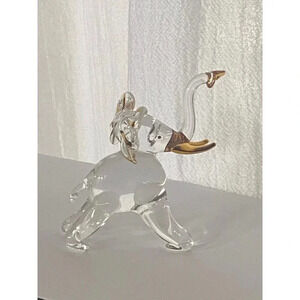 Elevate your decor with this elegant handcrafted glass elephant figurine. Featuring gold accents, it symbolizes luck and hope, making it a thoughtful gift.