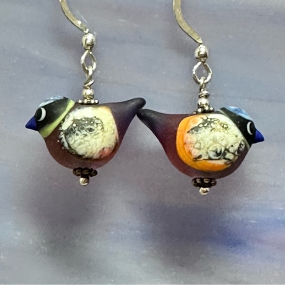 Handcrafted Glass Enamel Bird Earrings – Artisan Dangle Jewelry Hand Painted