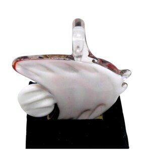 Handcrafted Glass Fish Pendant Figurine Abstract Orange Black Pattern White Fins