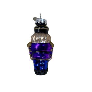 Add a touch of elegance to your holiday decor with this nutcracker ornament. Handcrafted glass and glitter accents create a festive, charming addition.