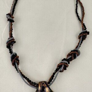Handcrafted Glass Pendant Necklace Beaded Braided Cord Design Adjustable 21"