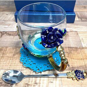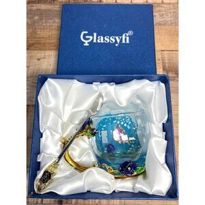 Handcrafted Glass Tea Cup With Golden Handle & Butterfly Design Gift Set