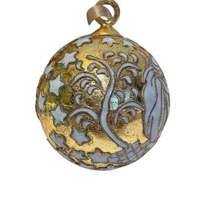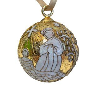 Handcrafted Gold & White Cloisonne Nativity Scene Ornament – Religious Christma