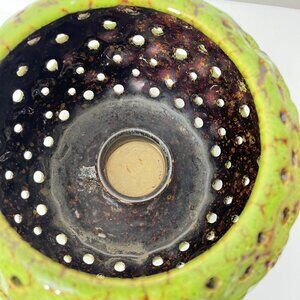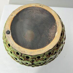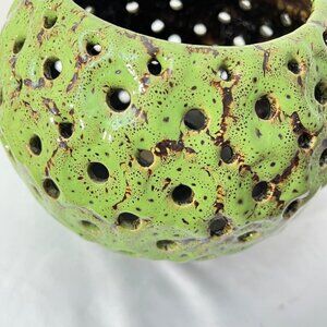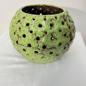 Candle holder, ceramic decor, home accent, perforated style, green design, handcrafted piece, decorative lighting, artistic ceramics, unique decor, interior decor, artisan craft, candlelight ambiance, green and brown