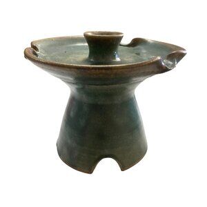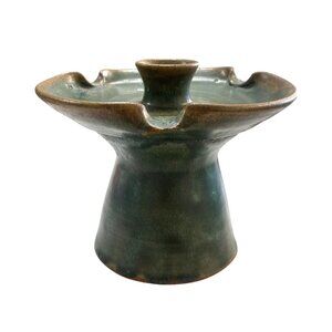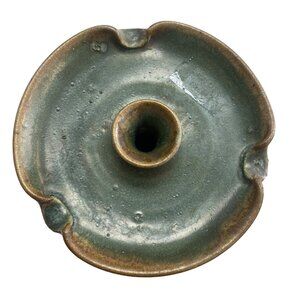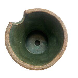 Handcrafted Green Pottery Vase Planter Candle Holder With Unique Scalloped Rim D