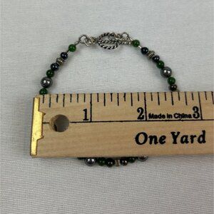 Handcrafted Green Silver Grey Beaded Bracelet Toggle Clasp