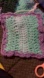 Experience luxury with this handcrafted wash cloth in soothing green and purple tones. Perfect for adding a touch of elegance to your bath routine. Double crocheted for extra pampering.