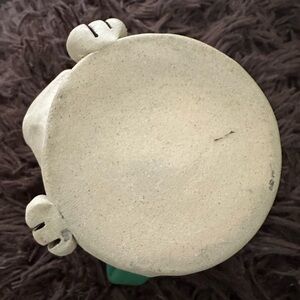 Enjoy your favorite beverage with this unique handcrafted ceramic mug. Featuring a charming design in green and tan, this mug adds a touch of whimsy to your collection. Perfect for art lovers and ceramic enthusiasts.