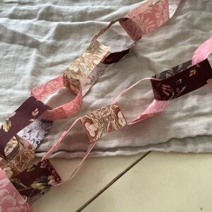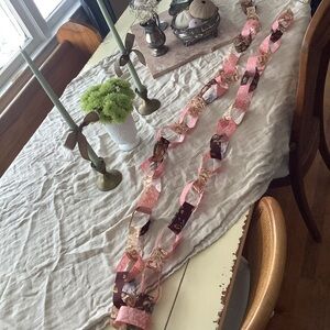 I made this cute pink and brown hues paper chain out of a coated ribbon. It will hold up for a very long time.