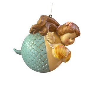This whimsical mermaid ornament brings the charm of undersea life to your decor. Her playful design, with flowing hair and seashell accents, tells the story of a cheerful ocean adventure. Perfect for brightening any space, she adds a touch of enchantment that sparks joy and curiosity.