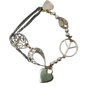 Handcrafted Heart Spiral Teardrop Peace Sign Charm Bracelet