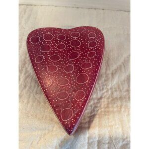 A charming heart-shaped Stone trinket box featuring intricate red and white polka dot patterns. Ideal for storing small keepsakes or jewelry, its interior is elegantly crafted to complement its unique design. A functional and decorative addition to any space. It is 5” L by 3.5W by 2”H and in excellent condition. Stones not included.