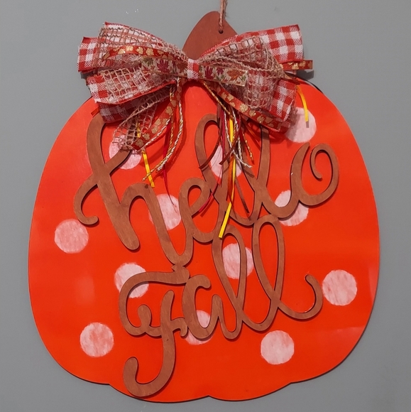 Handcrafted Hello Fall Pumpkin Sign