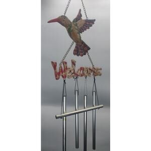 Handcrafted Hummingbird “Welcome” Metal Wind Chime – Outdoor Garden Decor