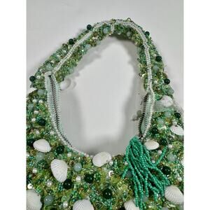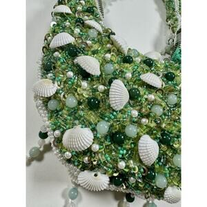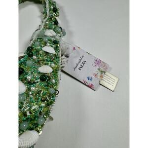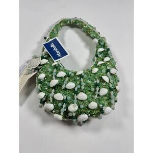 Handcrafted In India Beaded Bag Viral Green with shells Beach Time Vacation NWT