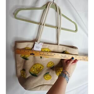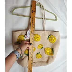 Handcrafted In India NWT Beaded Lemons Canvas Tote Beach Bag handbag ViralTikTok