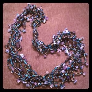 Stunning, Artisan handcrafted, amazing quality necklace, with raw amethyst and Iolite (indigo semi-precious stone). Beautiful Irridesent indigo and violet beadwork throughout. Easy to manage magnetic, invisible closure as seen in last pic. (it only adds to the beauty!) Anamazing Boho piece to accessorize any style! A must see!!