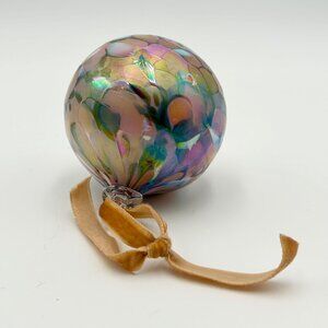 Handcrafted Iridescent Glass Ornament With Velvet Ribbon | Glass Eye Studios Blu