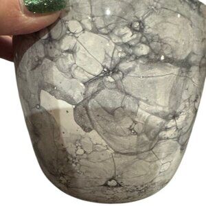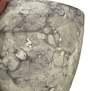This handcrafted ceramic pot showcases a marbled gray and white finish, blending artistry with functionality. Designed in Italy, it’s ideal for décor or planting.