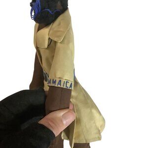 This set of two handcrafted Jamaican dolls showcases unique embroidered details and button accents, capturing a distinct cultural charm. Each measures approximately 14 inches and 12.5” offering an eye-catching addition to your collection or a thoughtful gift. Their design reflects traditional attire, making them an intriguing piece for display or educational purposes.