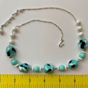 Handcrafted Japanese Turquoise Abstract Glass Bead Necklace