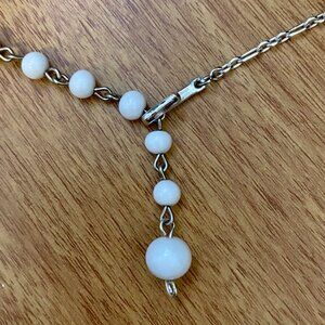 A handcrafted princess length necklace made from vintage Japanese abstract glass beads and silver tone Figaro chain.