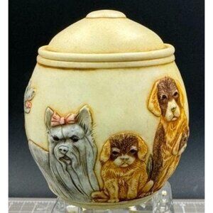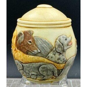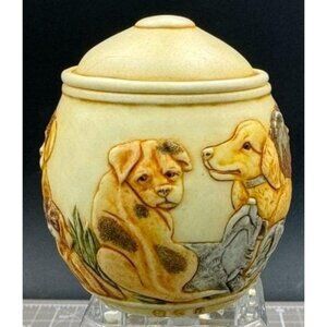 Handcrafted Jardinia Dog Themed Decorative Lidded Jar Urn
