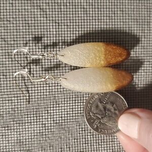 Small brown, gold and pearl oval resin earrings with hypoallergenic silver hooks