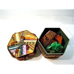 The interior of the boxes may also hold a special inspirational message and is painted and coated for durability - perfect for also storing small trinkets mementos, photos and more. About 4" tall x 4" diameter - This particular box has a fun exotic tribal flair... I have several styles - please check out my store!