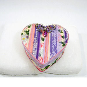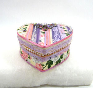 This box is covered in a pretty fabric with older lace and jewelry. I have several styles - please check out my store!