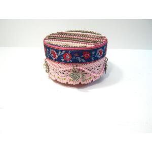 These fun embellished Keepsake boxes are created with refurbished re-purposed materials that generally consist of vintage fabric, jewelry, gemstones ribbon, repurposed old cards and anything else I can find! For these reasons each box is One of A Kind.