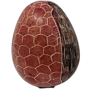 Handcrafted Pink Black Soapstone Egg Hand Carved & Painted Kenya