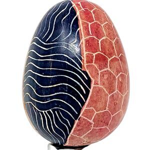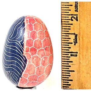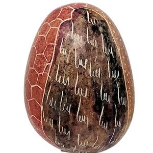 Handcrafted Pink Black Soapstone Egg Hand Carved & Painted Kenya