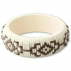 Handcrafted L Tribal Chocolate Brown Cream Rattan Wicker Bangle Bracelet Large