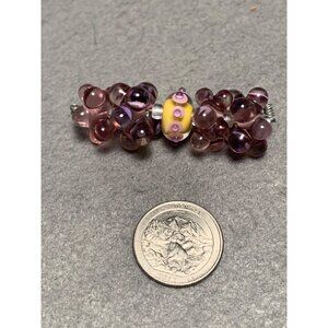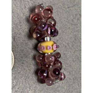Handcrafted Lampwork Purple & Tan Glass Bead Cluster set of 5