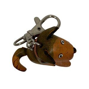 This leather dog keychain offers a charming design with a durable metal clip, combining functionality with style. Its handcrafted quality ensures uniqueness.