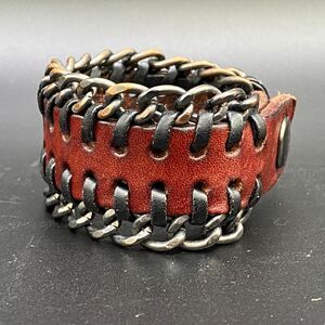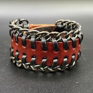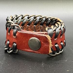 Handcrafted Leather & Chain Snap Bracelet Punk Rock Unisex